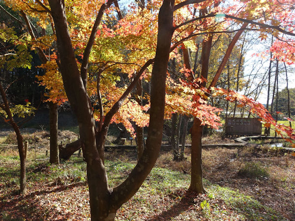 11月になって、虫たちの声はなくなり、山野草の花々も枯れはてて静かな園内は紅葉に覆われていました。