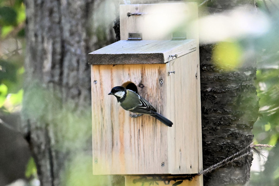エゾヒタキが幼鳥に給餌している様子や、シジュウカラが昨年12月に設置した巣箱を覗いている様子を捉えました。