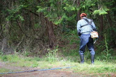 集会場脇の湿地帯の草刈