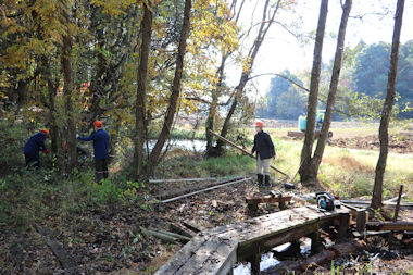 メダカンボの池の遊歩道補修>