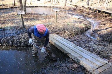 橋本会長 胴長着用手動による浚渫作業