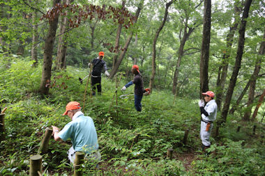 夜の昆虫観察会のために除草・倒木の撤去・植物の保護