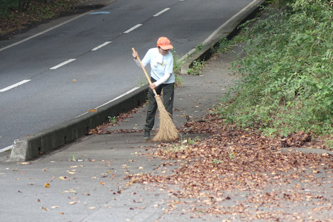 路側帯および縁石周辺の草刈り・ごみ拾いと清掃 | |