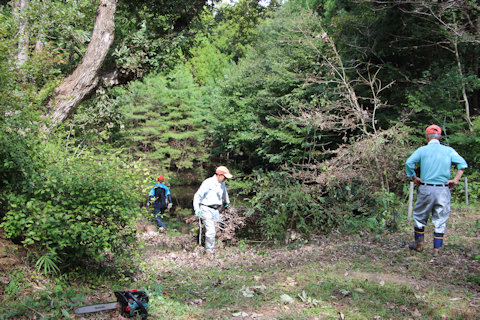 作業終了後の天神池入り口