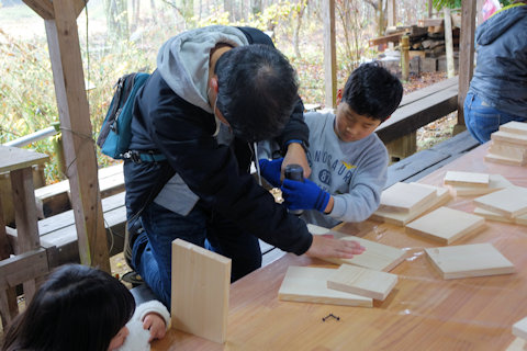 フクロウの巣箱つくり