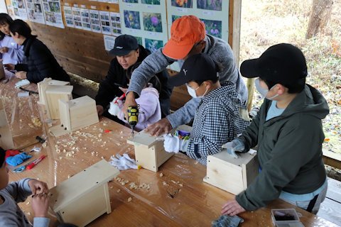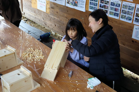 完成させました。 出入口の角の紙やすり仕上げは、一番たいへんでしたが、出入りする小鳥のことを考えて、ていねいに仕上げ ました。 巣箱の取り付けは、次回2月の自然体験教室の際に実施します。 フクロウが来てくれたら、すばらしいですね!! 次回は2月22日です。 下記の予定表を参照ください。 | |||||||||||||||||||||||||