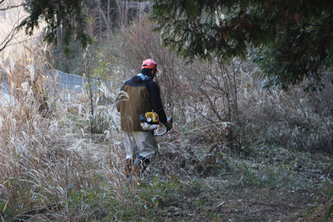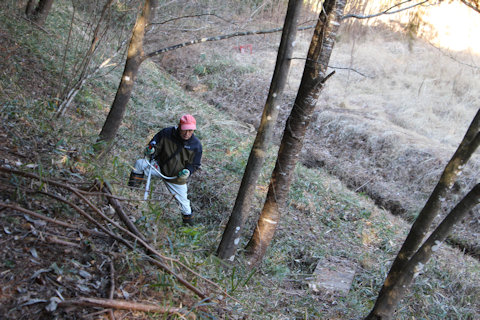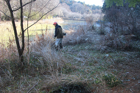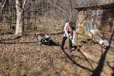 オオムラサキの里の枯草刈りと落ち葉さらい