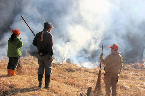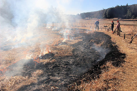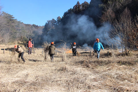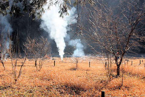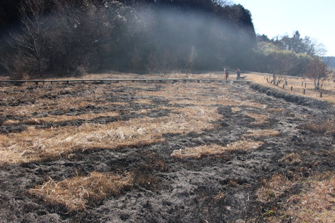 病害虫防除のためミソハギの里で刈り払った枯れ草の柴焼き | |