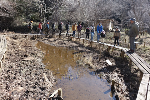 メダカを見ながらミソハギの里の木道をゆく