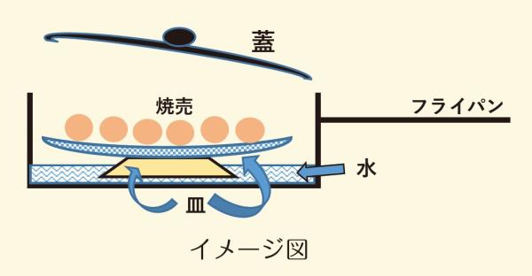 (1). フライパンに水を入れ、耐熱皿を上下逆さにして台にする。