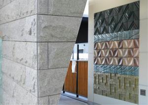 この稲田石が年月を経て風化して粘土になり、作られているのが笠間焼で、壁面や通路を飾る陶板レリーフなどが、建築物では活用されています。
