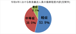 令和5年救急出動件数は、3,810件で約半数が入院の必要のない軽症でした。