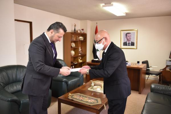 駐日シリア・アラブ共和国大使館にて(写真左 ナジブ・エルジ代理大使)