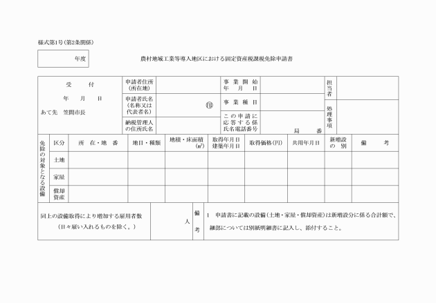 ○笠間市固定資産税の課税免除に関する条例施行規則