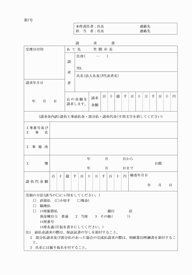 第15条 建設工事請負契約書に基づく通知書の様式は、別表に定めるとおりとする。