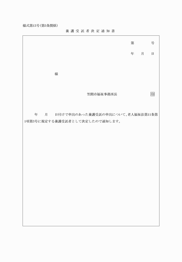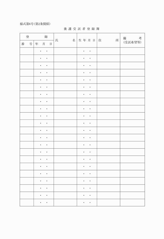 第5条 施行規則第1条の7の規定による申出は、養護受託申出書(様式第12号)によらなければならない。