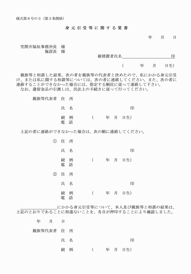 (2) 身元引受等に関する覚書(様式第8号の3)