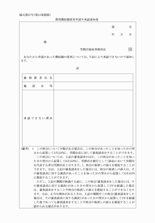(養護老人ホーム・特別養護老人ホーム廃止(休止・入所定員減少・入所定員増加)認可申請書)