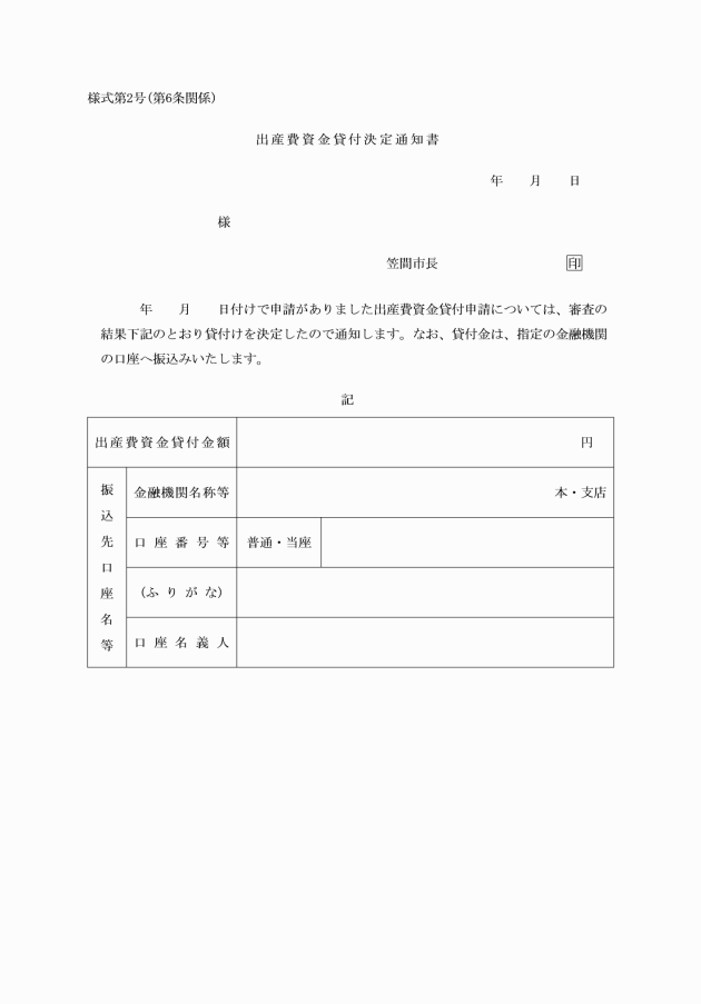 第6条 市長は、申請書を受理したときは、速やかに審査し、貸付けの可否及び貸付額を決定しなければならない。