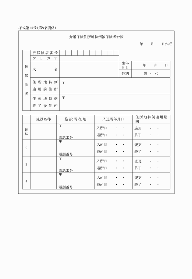 第7条 介護保険施設は、法第13条第1項又は第2項の規定の適用を受けている被保険者が入所している場合は、当該被保険者に係る異動について、様式第7号により市長へ届け出なければならない。