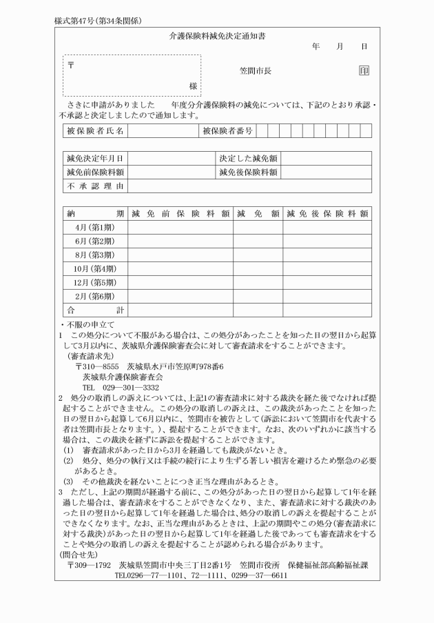○笠間市介護保険条例施行規則