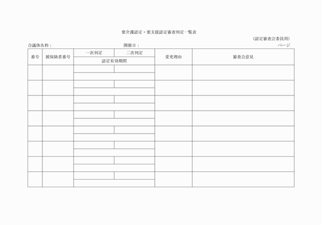 第10条 認定審査会の開催に先立ち、当該開催日の認定審査会において審査及び判定を行う審査対象者をあらかじめ定めた上、該当する審査対象者について次の各号に掲げる審査判定資料を作成することとする。