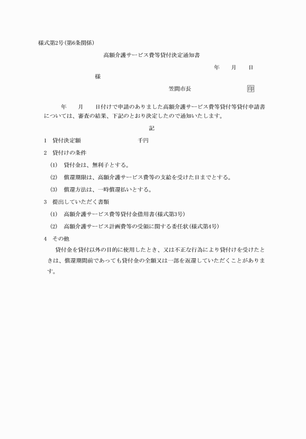 3 市長は、貸し付けることが不適当と認めたときは、高額介護サービス費等貸付不承認通知書(様式第5号)により申請者に通知するものとする。