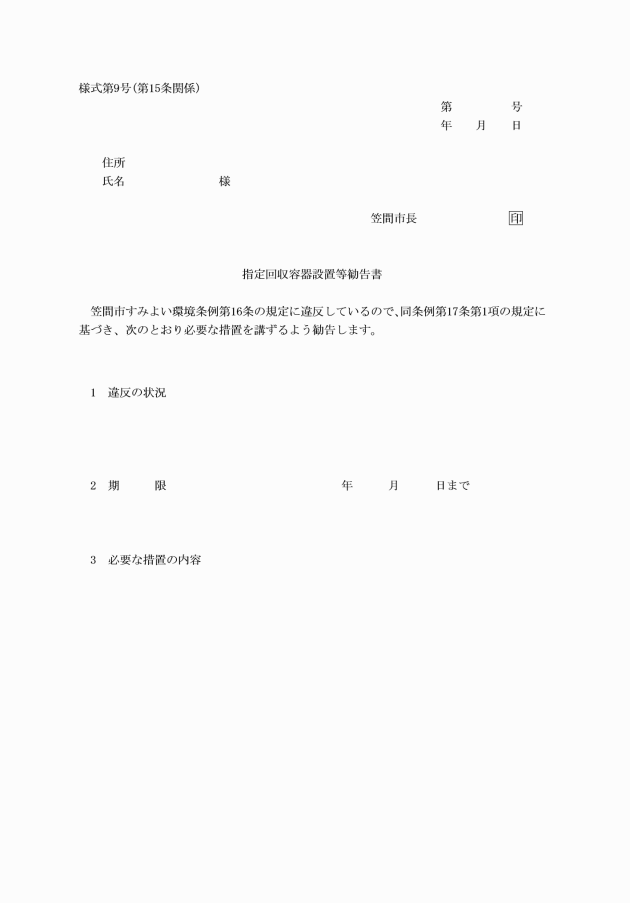 3 市長は、前2項の届出書の提出を受けたときは、その1通に届出済印を押して返付するものとする。