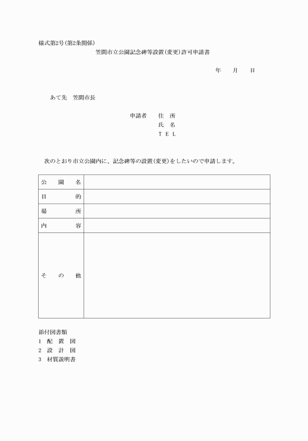 条例第3条第1項第1号から第4号まで | 笠間市立公園使用(変更)許可申請書 | |