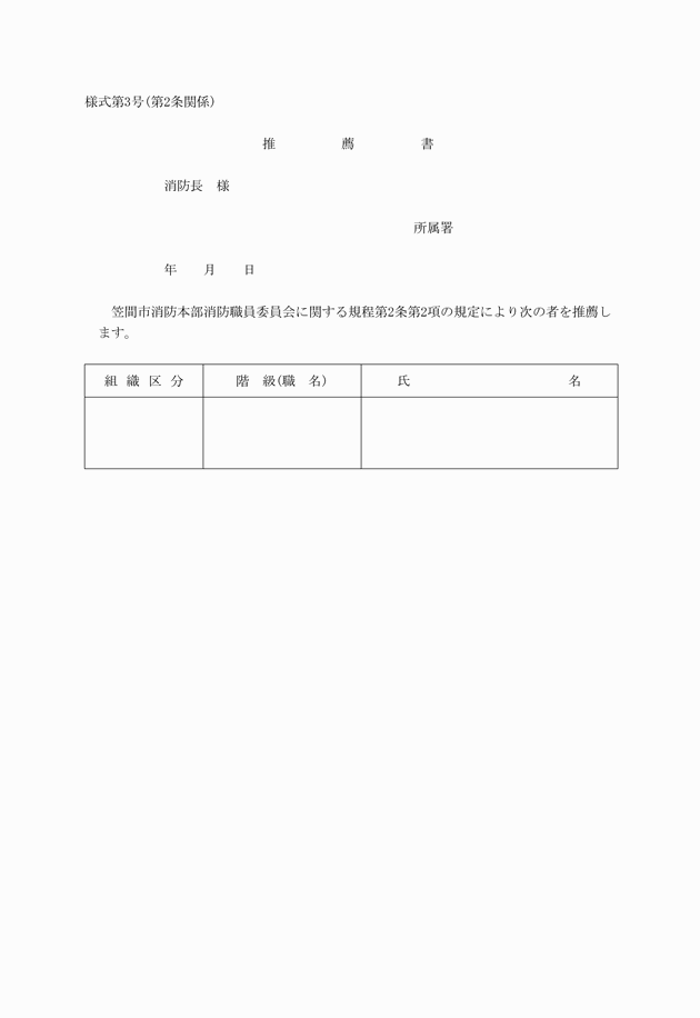 2 組織区分に所属する消防職員の推薦にあっては、推薦書(様式第5号)により推薦するものとする。
