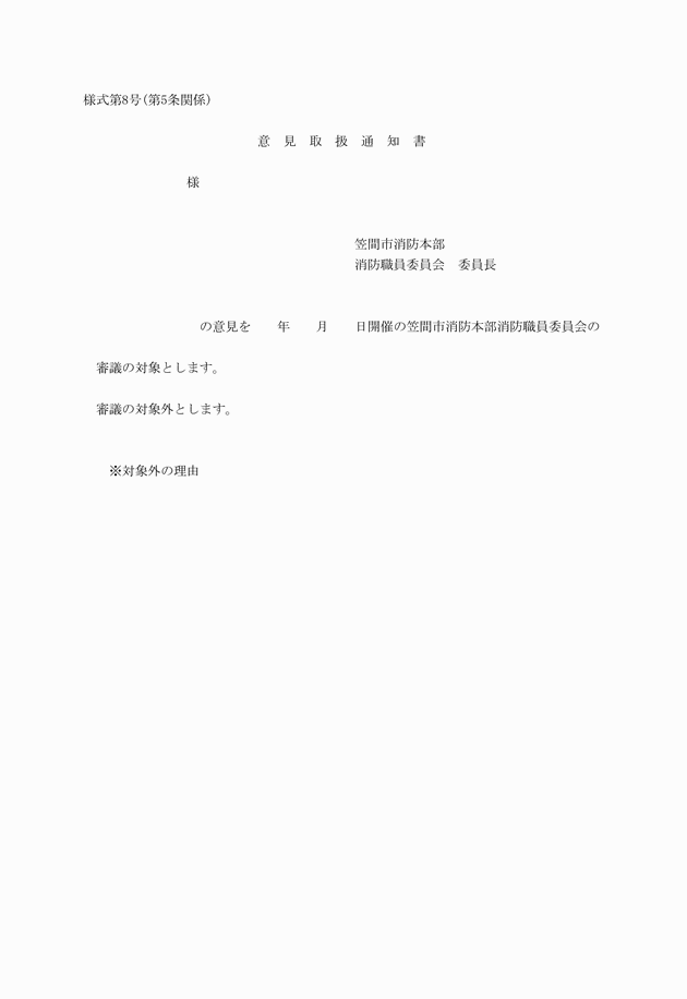 2 審議の対象とするか否かの通知は、意見取扱通知書(様式第8号)により行うものとする。