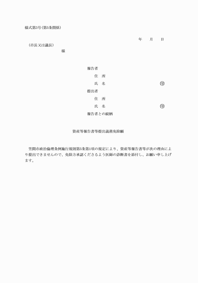 3 閲覧者は、資産等報告書等を破損し、汚損し又はこれに加筆し若しくは機器による読取り等の行為をしてはならない。