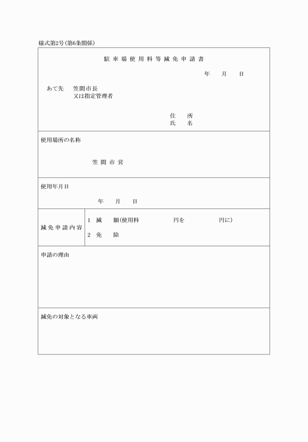 (2) 笠間市が業務を行う際に駐車場を使用するとき。 | 全額 |