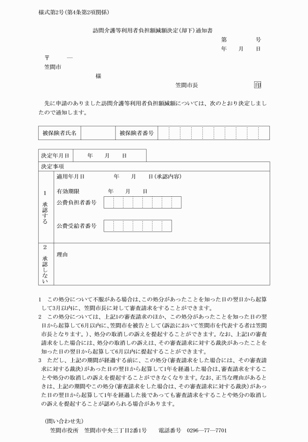 第8条 認定証の交付を受けた者が、住所又は氏名を変更したときは、14日以内に訪問介護等利用者負担額減額認定証記載事項変更届(様式第5号)により、市長に届け出なければならない。