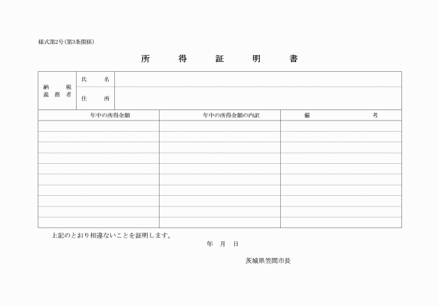非課税証明書 | 氏名、住所、生年月日 非課税である根拠法令 | ||