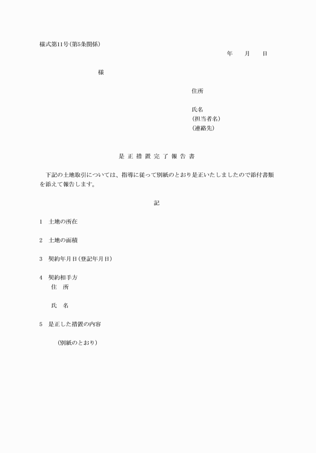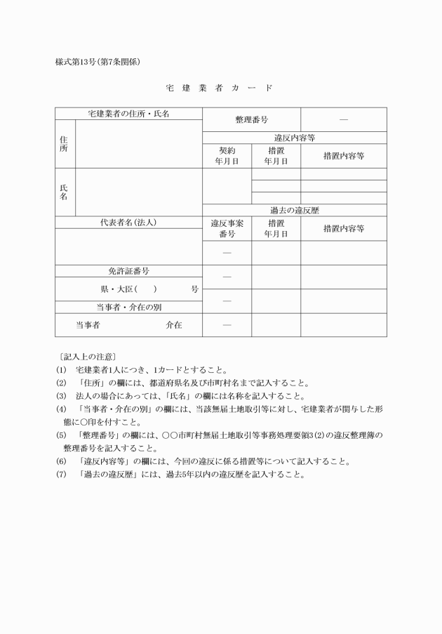 第6条 第5条による措置を行ったときは、その結果を国土法違反整理簿及び違反事案カードに記載する。