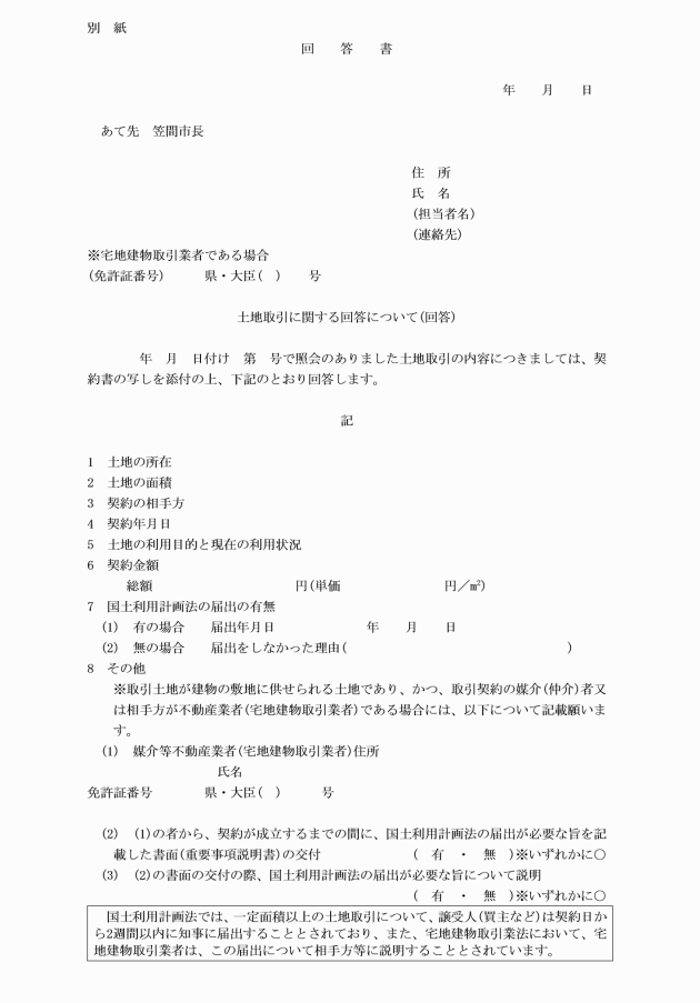 ア 当事者(権利取得者をいう。以下同じ。)に対し、その取引内容等を電話又は文書(様式第3号)により照会するものとする。ただし、期限後届出等により土地取引内容が把握できる場合はこれを省略できるものとする。