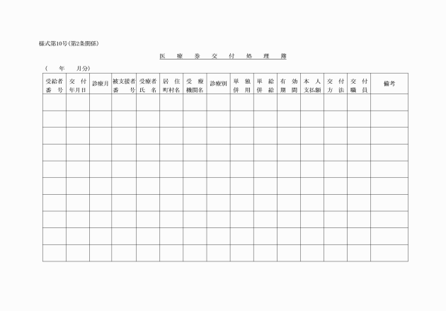 第9条 保護法第30条第1項の規定により被支援者を保護施設若しくはその他の適当な施設に入所させ、若しくはこれらの施設に入所を委託し、又は私人の家庭に養護を委託するときは、その施設の長又は私人に対して発行する入所等依頼書は、様式第25号によるものとする。