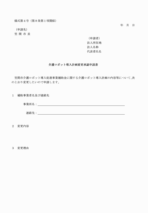 第13条 介護ロボットを導入した補助事業者は、原則として導入後3年間、介護サービス事業所における介護ロボットの毎年度の使用状況について、笠間市介護ロボット導入促進事業介護ロボット使用状況報告書(様式第10号)により、報告対象の年度の翌年度の4月末日までに市長に報告をするものとする。