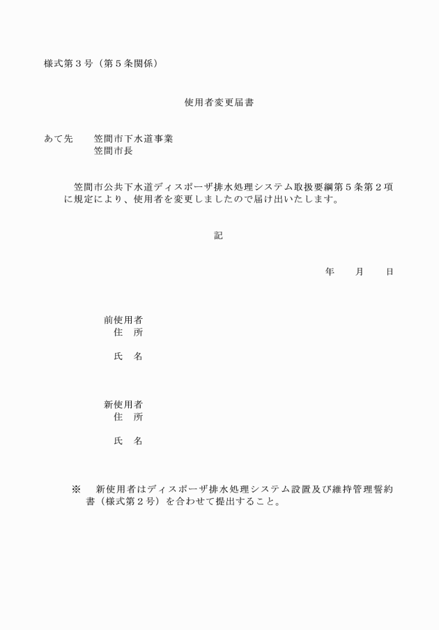 (1) ディスポーザ排水処理システム設置届(様式第1号)