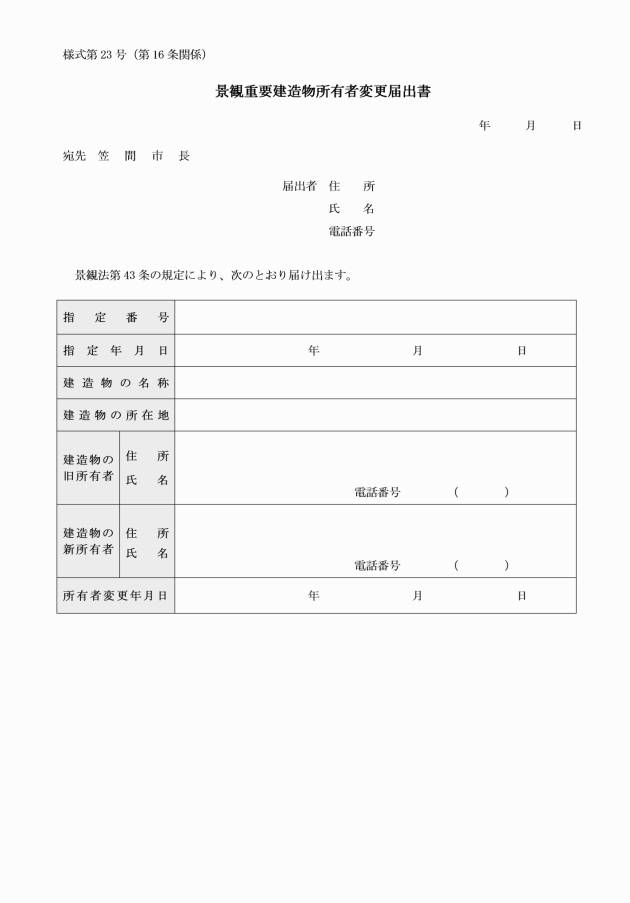 意見書 | 所有者の意見書 | 当該景観重要建造物の所有者が、申請者以外である場合 | |